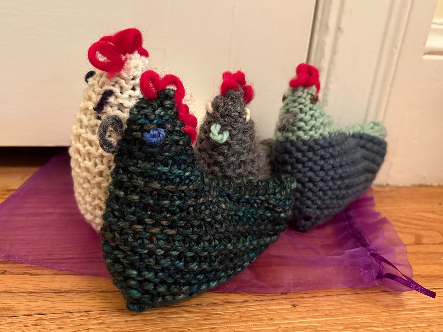 Once upon a time (when I was in high school) I thought about becoming a professional photographer. Which is perhaps why I decided to take a photography class in Florence (Italy) after college and before grad school. I took black and white photos with a good old fashioned SLR camera (no digital cameras in those days!) and developed the film, by hand, in a dark room. In late 2025 I took up knitting. So far I’ve knit a hat, a cowl, a blanket, a few chickens, and a hoodie. I’m currently eyeing all the beautiful yarn at my local yarn shop to decide what to make next. Maybe it’ll be socks, although I’m worried about ending up as a member of the one-sock-club.