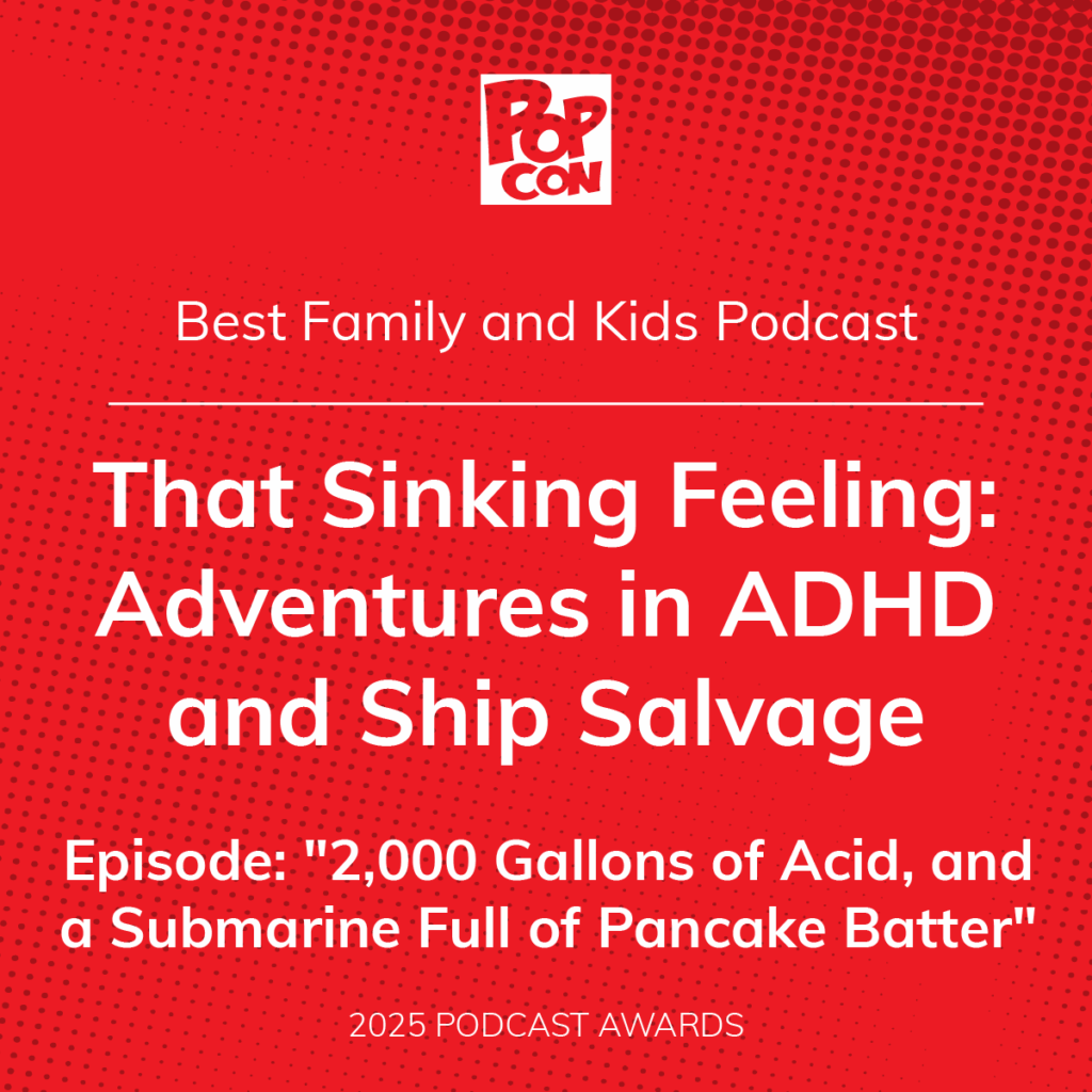 That Sinking Feeling: Adventures in ADHD and Ship Salvage is about my son’s ADHD seen through the lens of my Dad’s ship salvage career. It’s peppered with stories and insights from interviews with parents whose kids have ADHD and from individuals who have ADHD themselves. The podcast is written and produced by Elizabeth Rynecki and Tony Kaplan. Read our bios to learn more about us.